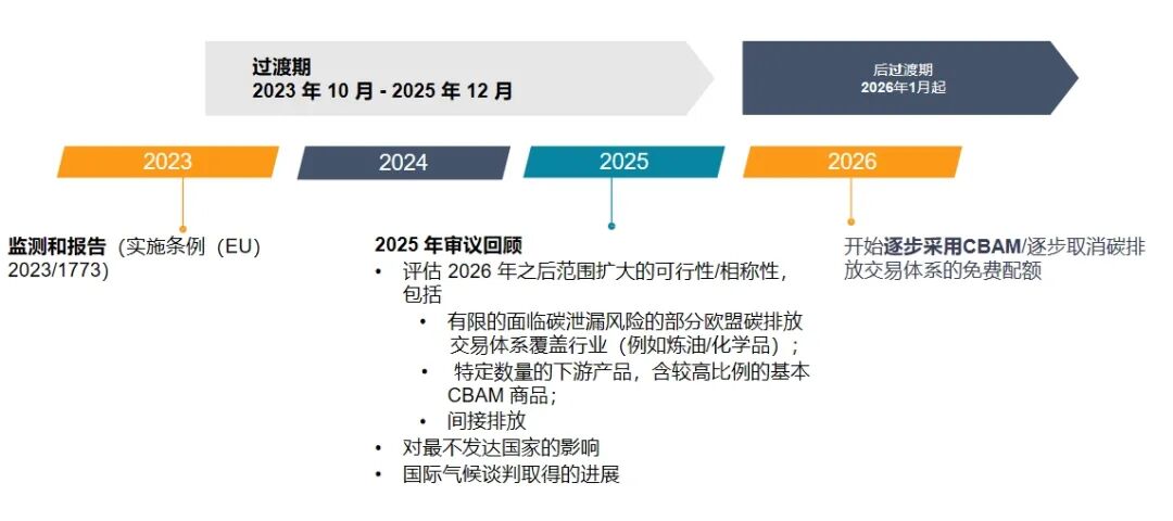 过渡期:2023年10月1日至2025年底,企业需报告碳排放量,但无需支付碳关税。
