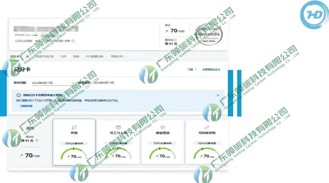 成功跻身全球企业可持续发展排名前15%。企业对领碳科技在EcoVadis评估辅导方面展现的专业能力表示高度认可。