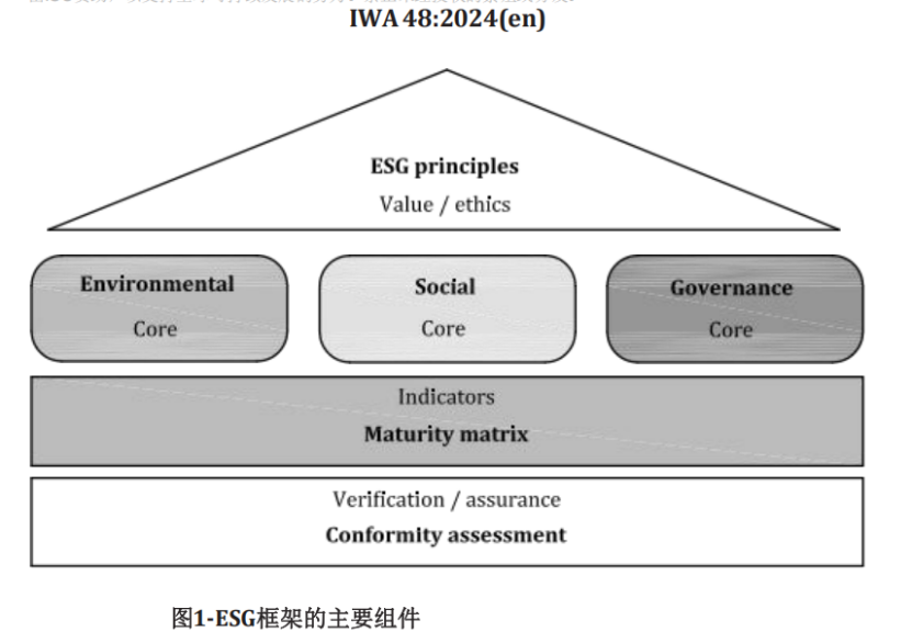 这一标准的发布标志着全球ESG实践进入了一个新的标准化和规范化阶段。ISO ESG IWA 48提供了一个全面的ESG管理标准,包括管理框架、术语、原则、指标体系、