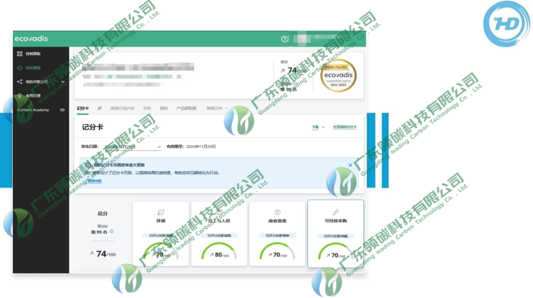 2024年12月份,广东领碳科技凭借深厚的可持续发展与社会责任领域专业实力。在EcoVadis的严格评估中,成功协助企业斩获了瞩目佳绩——1金4银6铜。这份成绩单不仅是对企业在环境保护、社会责任以及公司治理(ESG)方面努力的最好认可,还证明广东领碳科技的专业辅导为此提供了重要支持。